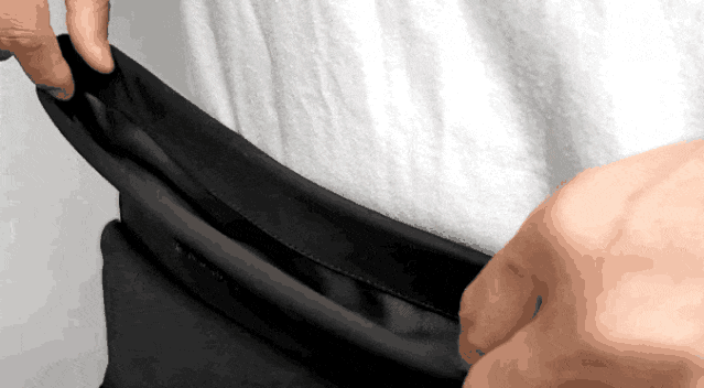 包包的背面,一个贴身的收纳袋,因为它是贴着身体的,所以隐秘性和防盗性是最好的,像钱包、证件等等重要的东西,可以“贴身保护”。