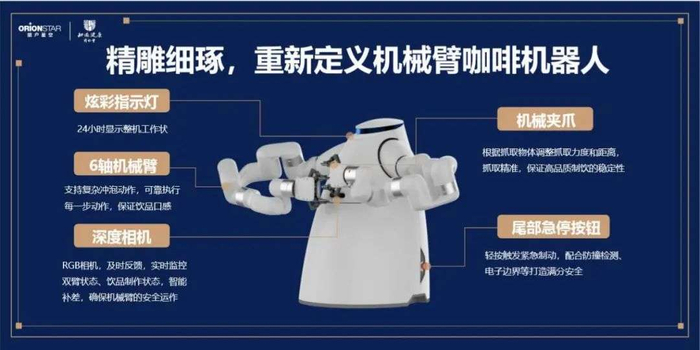 值得一提的是,在猎户星空的设计中,机械臂机器人做咖啡只是一个开端。未来,机械臂还有更多应用场景可供想象,如泡茶、做饭、切菜、拌面,机械臂机器人不仅是一款咖啡机器人,更是机械臂机器人融入商业和生活智慧化服务的一个开端。