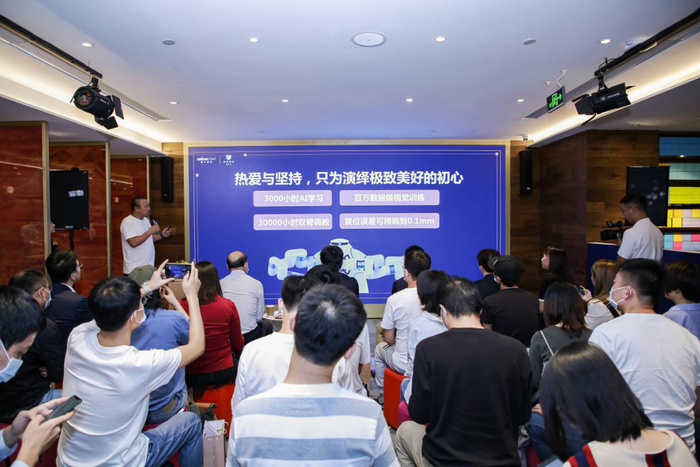在发布仪式现场,门庆华副书记、傅盛董事长分别代表同仁堂健康和猎户星空致辞,并出席了猎户星空与同仁堂知嘛健康签署战略合作签约意向书仪式。双方的紧密合作也为智咖大师及后续猎户星空机械臂机器人产品系列推出上市开了好头。