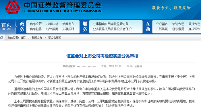 A股再融资也有"快速通道"!证监会将实施分类审核,这类上市公司可"上车"