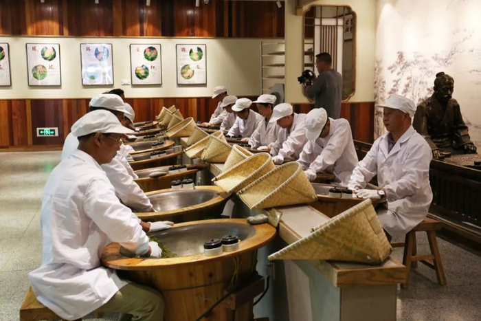 接着制茶师傅们再手工将茶叶揉捻成型,但龙井原料鲜嫩,需要精准把控揉捻力度。