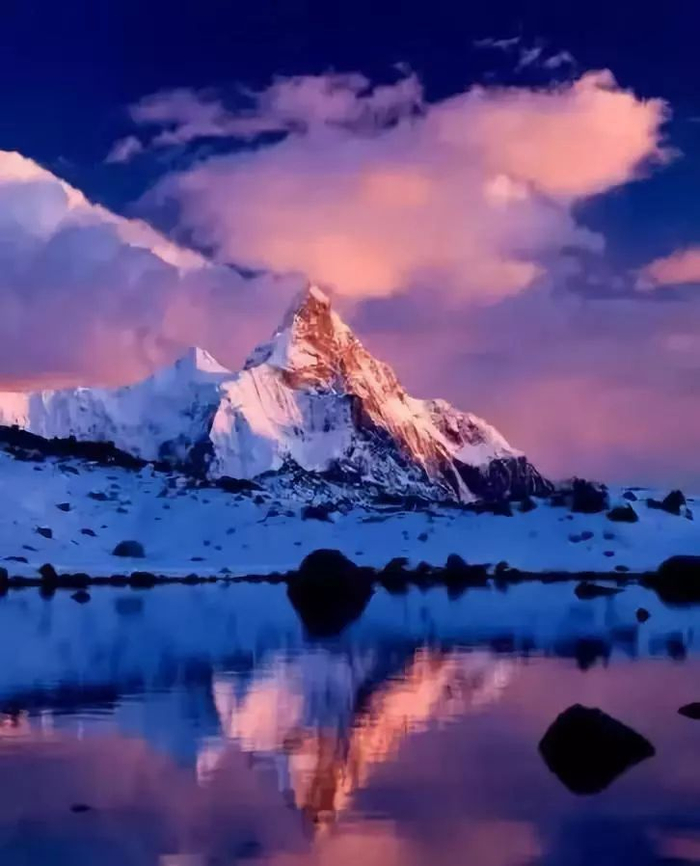 四姑娘山主峰幺妹峰倒影 摄影 大川健三