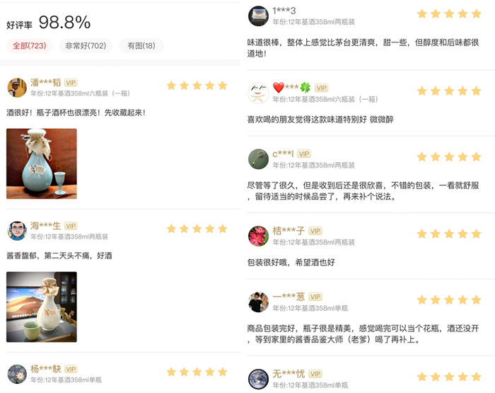 这款酒深受大家喜爱,好评如潮,在一条APP上,好评率高达98.8%(截止2020年8月26日)。