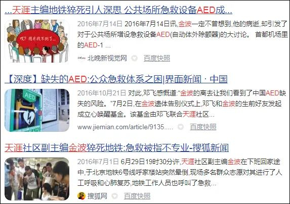 @急诊夜鹰 在帖子中重提了天涯社区副主编金波等人在北京地铁发生的猝死案例,质疑地铁方“拒绝”企业和个人捐赠自动体外除颤仪(AED)这一“急救神器”,在明知心脏骤停有效急救措施的情况下“装傻”。