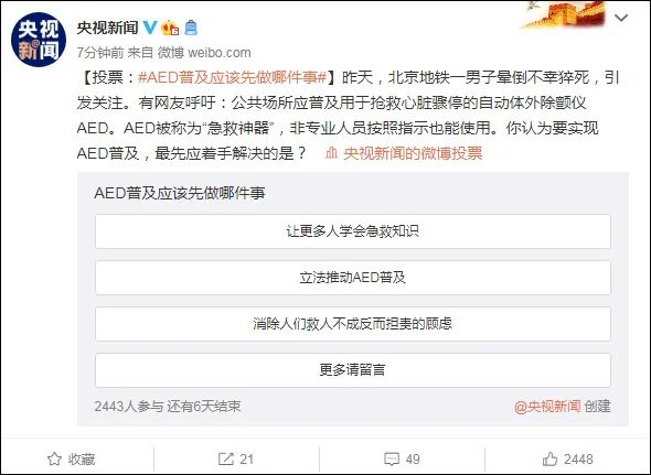 @央视新闻发起AED相关投票