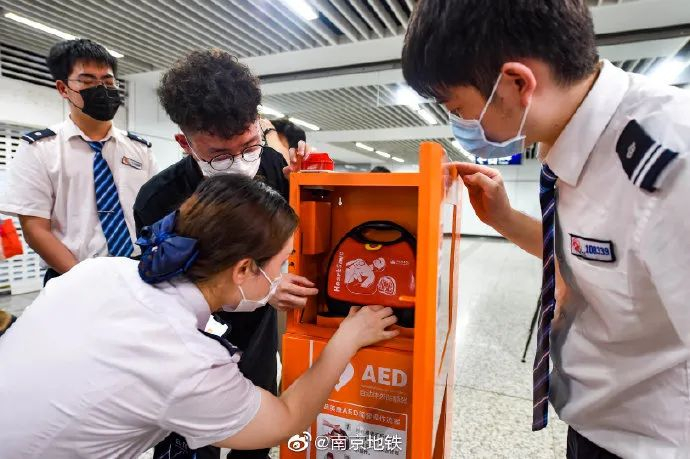 8月28日,南京地铁实现全线网车站AED设备全覆盖。图自@南京地铁