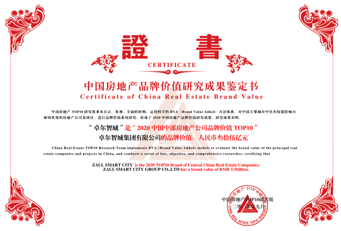 其中,卓尔智城集团有限公司首次荣获“2020中国中部房地产公司品牌价值TOP10 ”,同时,卓尔智城获评“2020中国文旅地产优秀品牌”。
