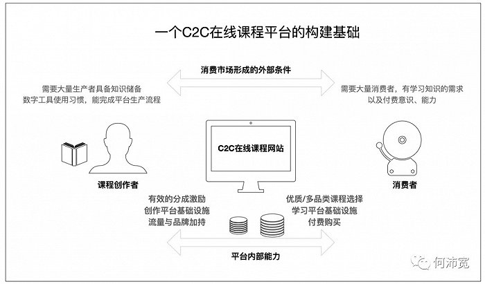 我们曾详细探讨过C2C学习平台的模式,以及它所需的社会环境,可视图如下: