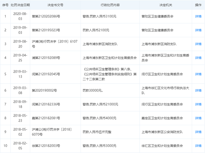今年7月,上海市长宁区卫生健康委公示游泳场所第一阶段随机监督抽查结果显示,威康健身管理咨询(上海)有限公司长宁分公司存在问题“水质(尿素)不合格处罚(传染病)”,接受整改;2019年,威尔士健身还曾因未保证经营期间具有不低于规定数量救助人员且逾期未改、安排未获得有效健康合格证明的从业人员从事直接为顾客服务工作等原因,被屡次处罚。