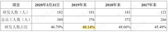 从人员来看,近半数的公司员工从事研发工作,比例较高。