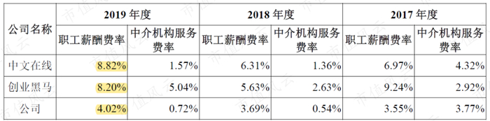 而公司披露的中文在线、创业黑马的职工薪酬费率都在8-9%之间,远超公司的4%。