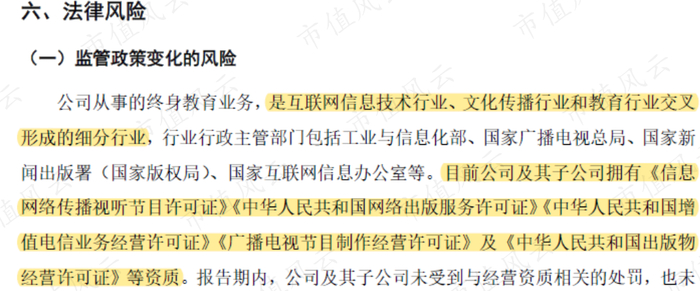 但从公司取得的相关许可证和资质来看,显然不算。因为都是些内容传播、电信增值、节目制作、出版物许可方面的资质,和教育几乎没啥关系。