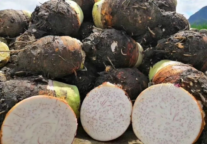 他们采收芋头的时候,把母芋采走,小芋头留在土里,等来年开春挖出来,进行再次种植,年年如此,方能保留它原有的味道。