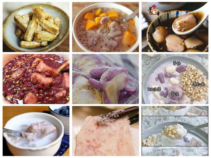 想吃甜品了?甜甜的香芋西米露、Q弹的芋圆、神仙的芋泥盒子、亲民的芋头糖水、暖暖的芋泥奶茶……只要加了芋头,那就是好吃的!