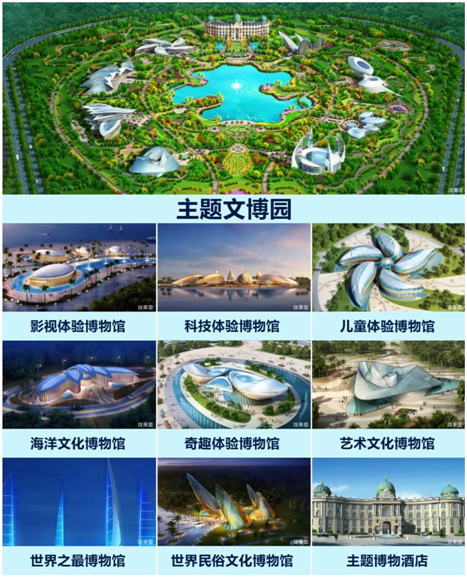 约24万㎡主题文博园,设有九大场馆,汇聚全球著名博物馆群,集收藏、展览、研究、公共教育、文化交流等功能于一体。