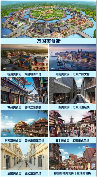 商业配套方面,项目规划约22万㎡万国美食天地,以全球美食文化为主题,荟萃世界各地美食,致力打造饮食、文化、休闲于一体的世界级美食圣地。美食天地力邀各国最高水准的星级米其林餐厅入驻,精选300家全球各类型极具特色的餐饮店、小吃店。美食天地设有十大分区,集中国地方美食,欧亚异国美食于一体,千滋百味,中西兼容。