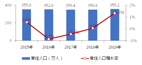 从常住人口来看,乌鲁木齐2019年末常住人口达355.2万人,占到全省人口总数的14.1%,较2018年增加4.6万人,同比增加1.3%。乌鲁木齐最新落户政策的实施将带来人口的持续增长,2019年4月12日,乌鲁木齐市印发《关于进一步完善人口落户政策的通知》,对学历落户、投资落户、就业落户等门槛再行调低。