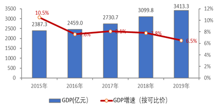 近年来,乌鲁木齐经济总体上呈现稳中向好,发展质量稳步提高的增长势头。2014-2018年乌鲁木齐GDP增速均高于7%,2019年全市生产总值3413.3亿元,按可比价格计算,同比增长6.5%,高于全国水平。分产业看,第一产业增加值27.69亿元,增长2.1%;第二产业增加值906.14亿元,增长1.1%;第三产业增加值2479.43亿元,增长8.4%,经济结构持续优化。