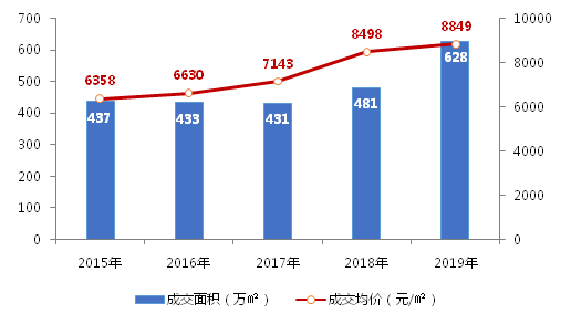 受益于乌鲁木齐城市整体规划利好及经济的快速发展,乌鲁木齐市及项目所在的新市区房地产市场也迎来了快速发展时期,片区房地产市场成交量价表现整体向好,乌鲁木齐市2019年商品住宅成交量达到628万㎡,同时成交价格维持了稳步上涨态势,新市区2019年商品住宅成交均价达到9294元/㎡,同比上涨4.7%。随着城北新区发展的持续推进,片区未来发展潜力显著。