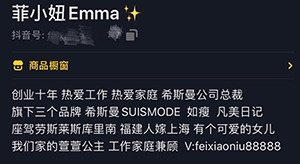 中国网财经记者调查发现,希斯曼大股东吴淑娟还以“菲小妞”的ID注册了抖音账号,该账号个人介绍显示,“菲小妞”即“希斯曼公司总裁”,还有“创业十年”、“座驾劳斯莱斯库里南”等个人说明,而“菲小妞”在抖音分享的短视频作品,也大都是其购买豪车、参加奢侈品品牌活动等日常生活。