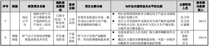 据招股书披露,尚沃医疗目前有8个在研项目,分别是“呼气硫化氢检测技术探索与临床应用”、“多种分子标志物呼气分析技术的研发及产业化”、“呼气氢甲烷分析仪的研发及产业化”、“呼气氨硫化氢分析仪的研发及产业化”、“肺功能测试呼出气分析一体机的研发及产业化升级”、“呼气测试采样技术的研发及产业化”、“纳库仑呼气分析大数据系统产品的研发及产业化”、“呼气分子诊断耗材智能制造系统技术开发”,报告期内经费投入分别为31.54万元、94.80万元、1008.53万元、742.16万元、137.80万元、369.75万元、196.71万元、156.14万元,合计2737.43万元。这些项目的主要研发人员都是尚沃医疗自身的员工,从而可以确定在研项目都是公司的自主研发。另外,通过国家知识产权局查询可知,公司在报告期内还申请了许多专利,这些专利对应的已完成研发项目同样需要研发投入。那么,报告期内,尚沃医疗已完成的研发项目和未完成的在研项目,合计自主研发投入应该高于2737.43万元。