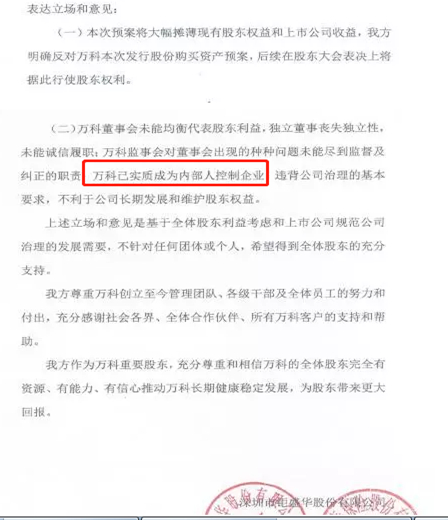 万科内部控制人的三大指控