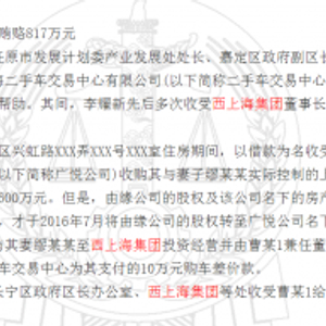 不幸的是,三个月后,原上海市发展计划委员会产业发展处处长李耀新因涉嫌严重违纪被上海市纪委立案审查,西上海实控人之一曹抗美的贿赂行径随之浮出水面。