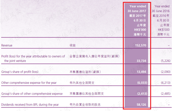合营企业账面价值的减少,是因为BPL把所得的票房收入最后以现金股利的方式,派发到各个持股股东,当期天马影视从BPL那里收到的现金股利为5813万港元。