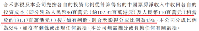 预算方面,《赏金猎人》的投入约为184亿韩元,折合港元1亿左右。影片对天马影视利润的贡献是放在应占一家合营企业业绩这个科目下。2017财年,天马影视从《赏金猎人》身上获得的收入为1349万港元。