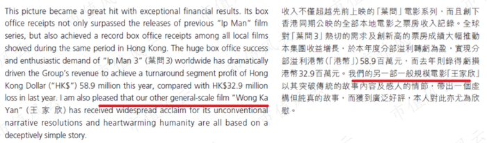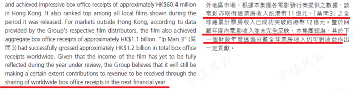 可以说,公司影视制作业务的业绩主要就靠《叶问》和《反贪风暴》两大IP系列了。
