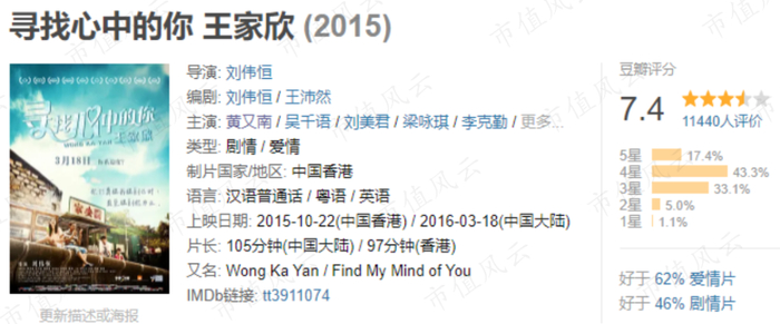 天马影视在财报里说,《寻找心中的你》的成本很一般(general-scale),由此可知其制作预算也不多。影片的评分达到7.4,表明其具备爆款的品相,只可惜天马影视无钱打磨,如果花钱做做宣发和推广的话,可能票房就不会这么惨了。