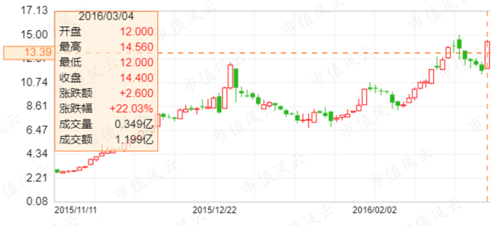 风云君注意到十方控股的股价在2016年3月4日,即《叶问3》在内地的首映日,暴涨了22%,而股价的上涨行情,早在2015年年末就开始启动,与快鹿集团收购大银幕的时间点基本吻合。