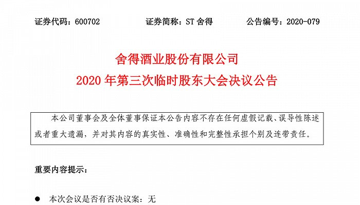 9月28日,舍得酒业召开了2020年第三次临时股东大会、第十届董事会第一次会议,审议通过了董事会、监事会和高级管理人员换届选举的相关议案。截至目前,舍得酒业董事会、监事会和高级管理人员换届选举已基本完成。