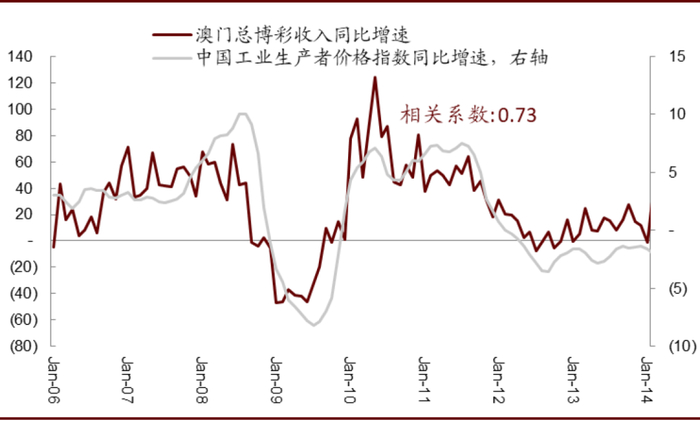 图表: 澳门贵宾博彩收入vs.中国工业生产者价格指数