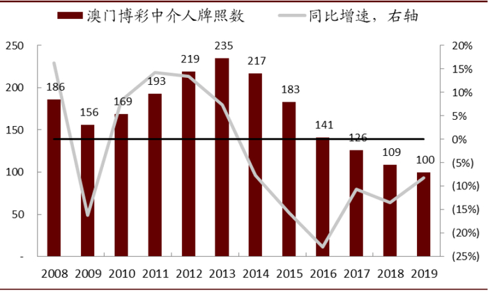 图表:贵宾转码数随博彩中介人牌照数量下降