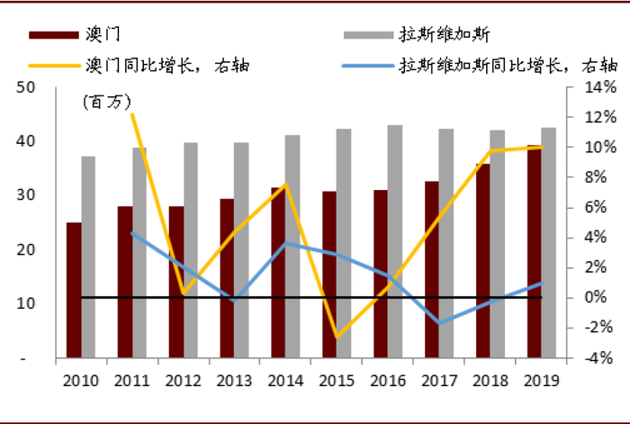 以拉斯维加斯为参照来研究澳门,我们认为澳门博彩行业的增长会受到非博彩因素的限制(如酒店客房数量、休闲娱乐设施等),因此扩大客房数量至关重要。
