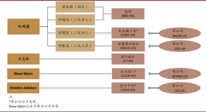►主要话事人:何鸿燊家族、吕志和家族、Steve Wynn团队及Sheldon Adelson团队。