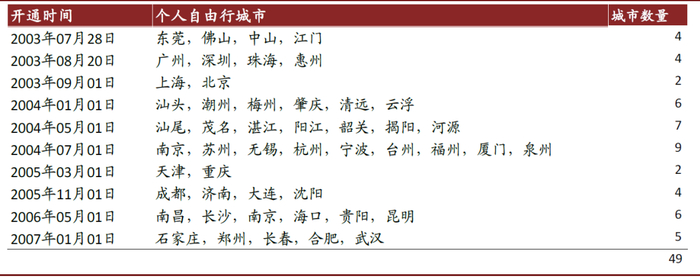 2003年起推出港澳个人游(又称港澳自由行),大陆游客赴澳门旅游可以不参加旅游团。最初4个开放自由行的城市均位于广东,截至2007年初大陆已有49个城市开放自由行。