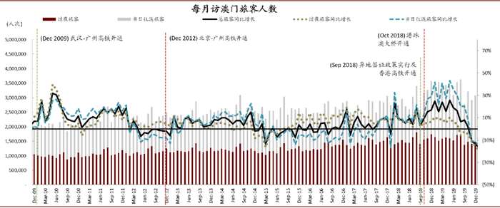 图表:主要交通基础设施开通后澳门游客数量有显著增长