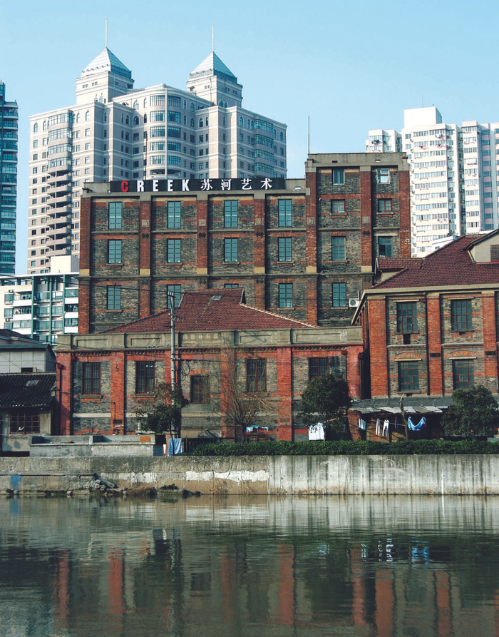 苏州河边先后有过不少艺术和设计空间,大部分是老厂房改建,Loft风格,遗留的工业结构加上当代的展陈空间。其中很多开过又关了,比如CREEK苏河艺术。不知为什么,我对楼顶红白相间的这几个字印象很深,这幅招牌跟这栋老楼、附近的垃圾站、光复路这个路名,还有水中招牌和楼的倒影,在记忆中构成了一幅完整的画面。