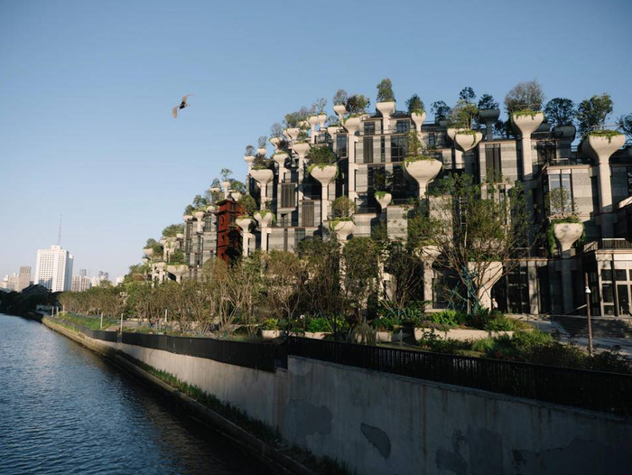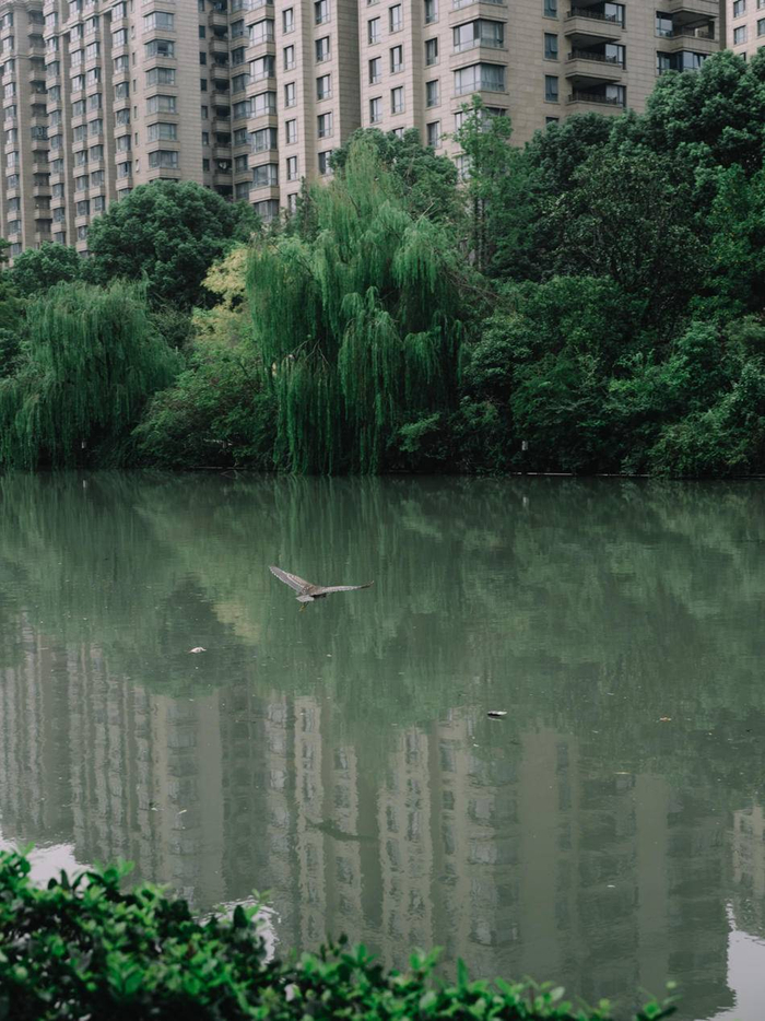 2020年9月16日,光复西路,苏州河岸边的楼盘,绿植和水鸟。澎湃新闻记者 周平浪 图