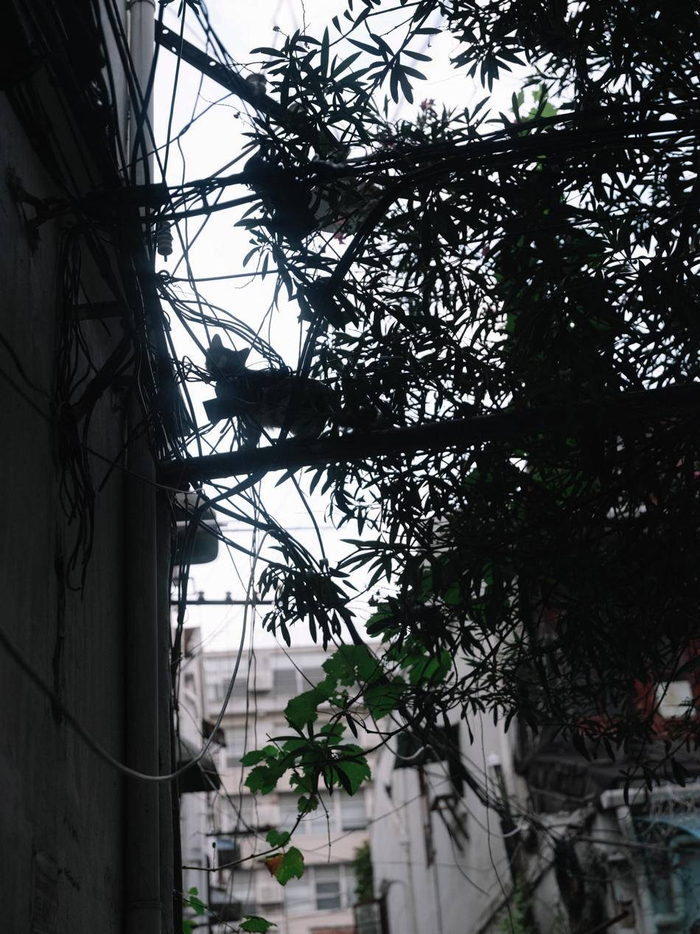 2020年9月1日,北外滩在拆迁的区域,树上的猫。澎湃新闻记者 周平浪 图
