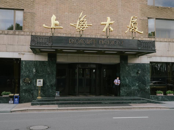 2020年6月6日,上海大厦正门,门前的机动车道将在9月改为步道。澎湃新闻记者 周平浪 图