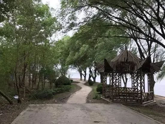 青松港绿地位于青松港套闸东侧, 原绿地的景观,加种部分垂柳,下方满种色块绿篱,提升绿地景观效果。