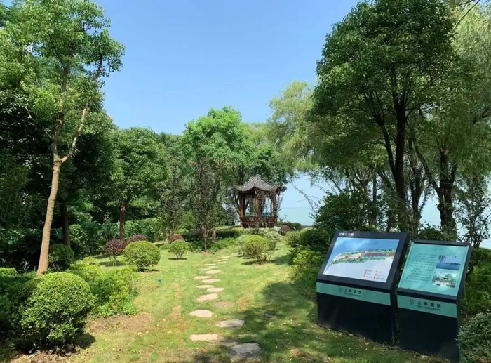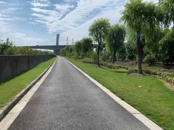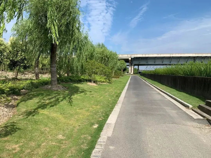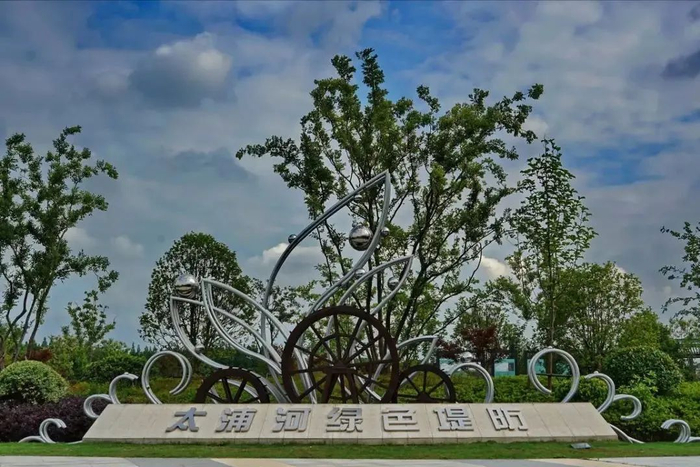 太浦河绿色堤防示范点面积约2万平方米,营造自然生态环境,特色景观步道,延伸水利文化。