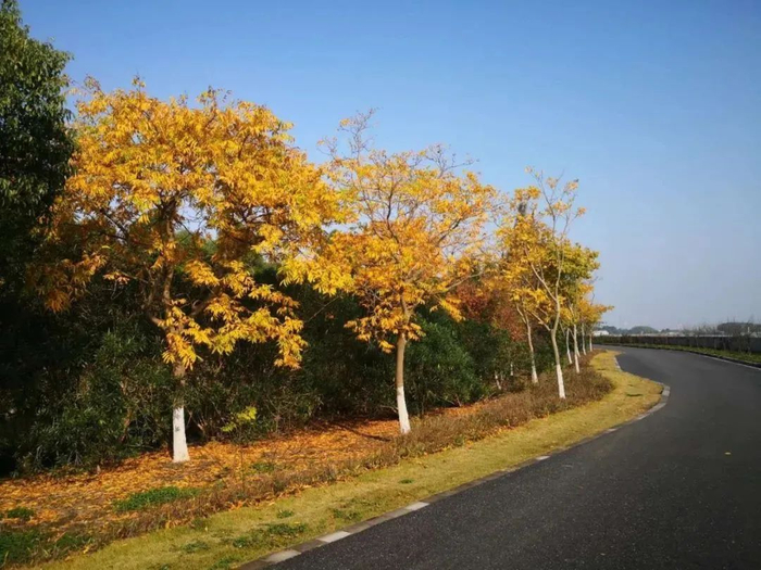 黄浦江干流段以黄色为主基调,沿线种植了银杏、无患子、金姬水腊球等黄色系植物。秋日时节,踏步黄浦江畔,享受收获的颜色。