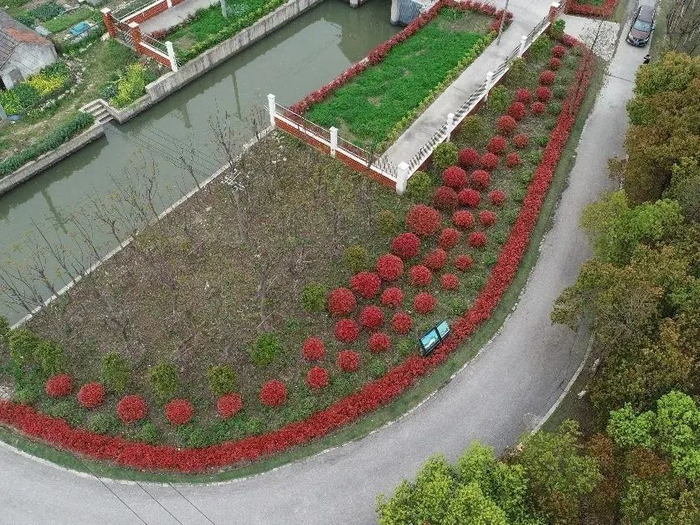 红旗塘以“红色”为主基调,沿线种植了红枫、红叶石楠、红花美人蕉,红花酢浆草。春秋之际,红旗塘沿线风景“红红火火”,给人以激情与热忱。