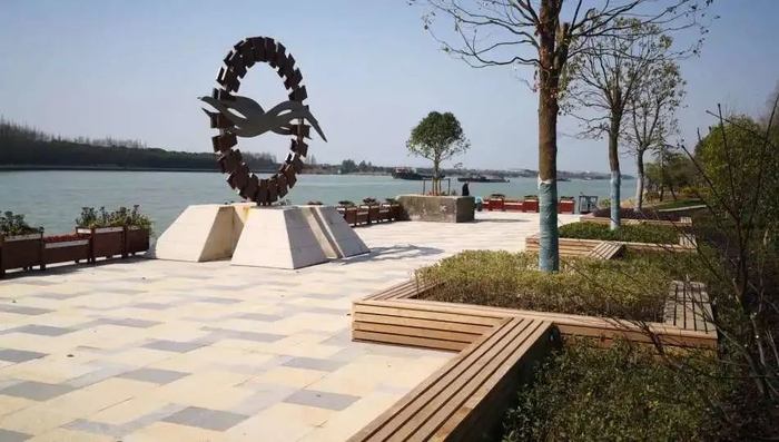 “源头绿地”位于黄桥港节制闸西侧,绿地面积约550㎡,以“榉树、桂花、绿篱为特色”。