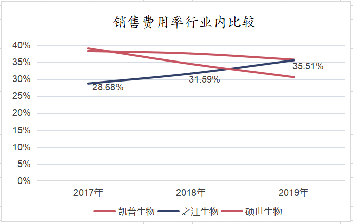 报告期内,之江生物的销售费用率分别为28.68%、31.59%和35.51%,处于逐年上升的趋势,而行业可比公司凯普生物和硕世生物的销售费用率则呈下降趋势,或从侧面反映了之江生物的产品竞争力存在不足。