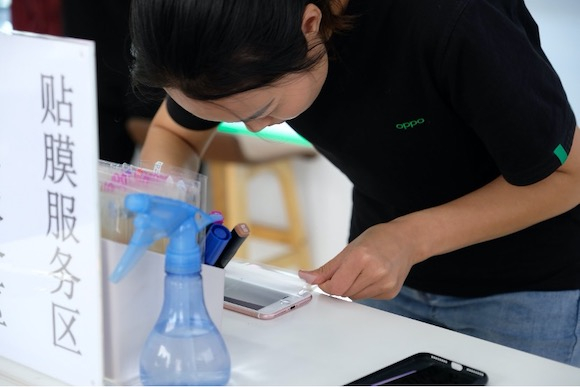 而对于已经购买了OPPO的客户,“我们不做一锤子买卖”,李翠所在门店不仅提供免费贴膜、装壳等基础服务,在其他需求上,导购也尽力帮忙。客人进了门,先接待对方坐下喝杯水,顾客的牢骚悉数倾听,遇到像硬件损坏这种专柜无法解决的需求,她就帮客人跑一趟维修点,执行OPPO的服务原则:把简单带给用户,把复杂留给自己。对新购机的顾客,她还会在微信上做回访。